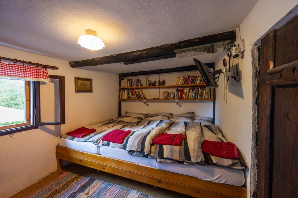 Původní komůrka s rodinným letištěm pro pohodlné přespání čtyř osob.