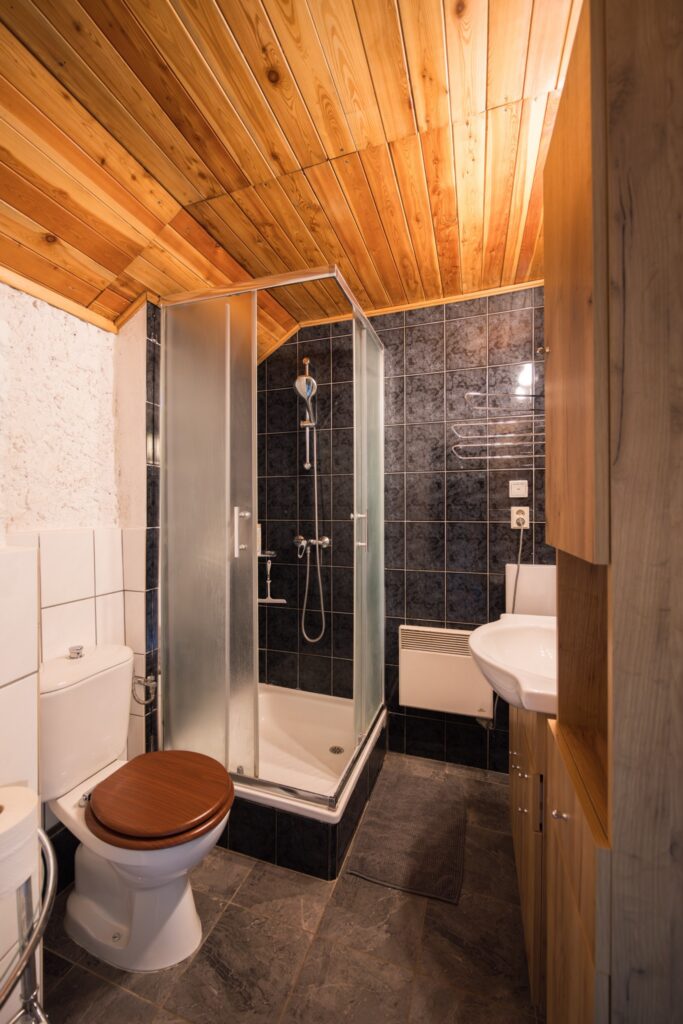 Pohodlný, široký sprchový kout a podlahové vytápění